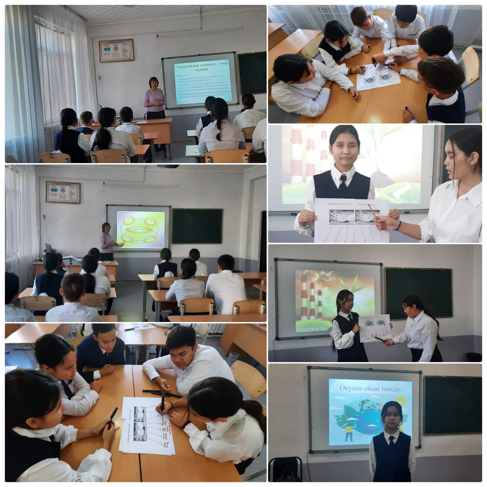 Сабақ барысында тәрбиеші оқушыларға экологиялық мәдениет ұғымын түсіндіріп, табиғатты қорғаудың өміріміздегі маңызы туралы айтты. Оқушылар бейнероликтер көріп, сұрақтарға жауап беріп, табиғатқа қатысты өз ойларымен бөлісті. Сонымен қатар, экологиялық жағдаяттарға байланысты шағын пікірталас ұйымдастырылды.