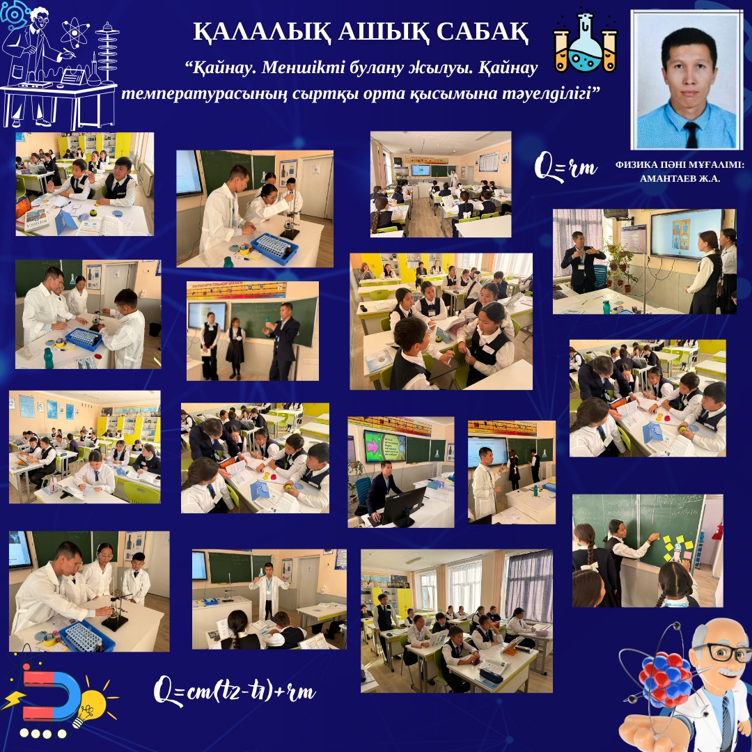 17 қазан күні мектебіміздің физика мұғалімі Амантаев Жанғали Ануарбекович қалалық “Жыл мұғалім-2025” қалалық байқауына қатысып, 8 сыныпқа “Қайнау. Меншікті булану жылуы. Қайнау температурасының сыртқы орта қысымына тәуелділігі “ тақырыбында ашық сабақ өткізді. Келесі кезеңге өтуге сәттілік тілейміз!!!