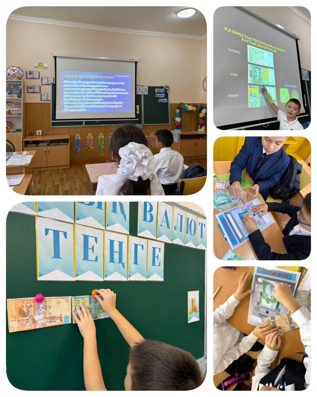 Сабақтың мақсаты – оқушыларға теңгенің шығу тарихы, ұлттық валютаның маңызы мен ерекшелігі туралы түсінік беру, ақшаны ұқыпты пайдалану мен еңбекті қадірлеуге тәрбиелеу болды.Сабақ барысында балалар бейнематериал көріп, топтық жұмыс арқылы теңгенің түрлерімен танысты. Сонымен қатар, ұлттық банк қызметімен танысып, ойын түрінде өз білімдерін бекітті.