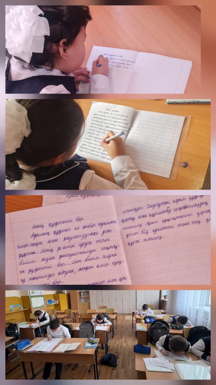 Аталған іс-шараға 2–5 сынып оқушылары қатысып, өз ойларын жазбаша түрде жеткізді. Эссе жазу барысында оқушылар өз құқықтары, міндеттері және мектептегі тәртіп ережелері туралы түсініктерін көрсетті.