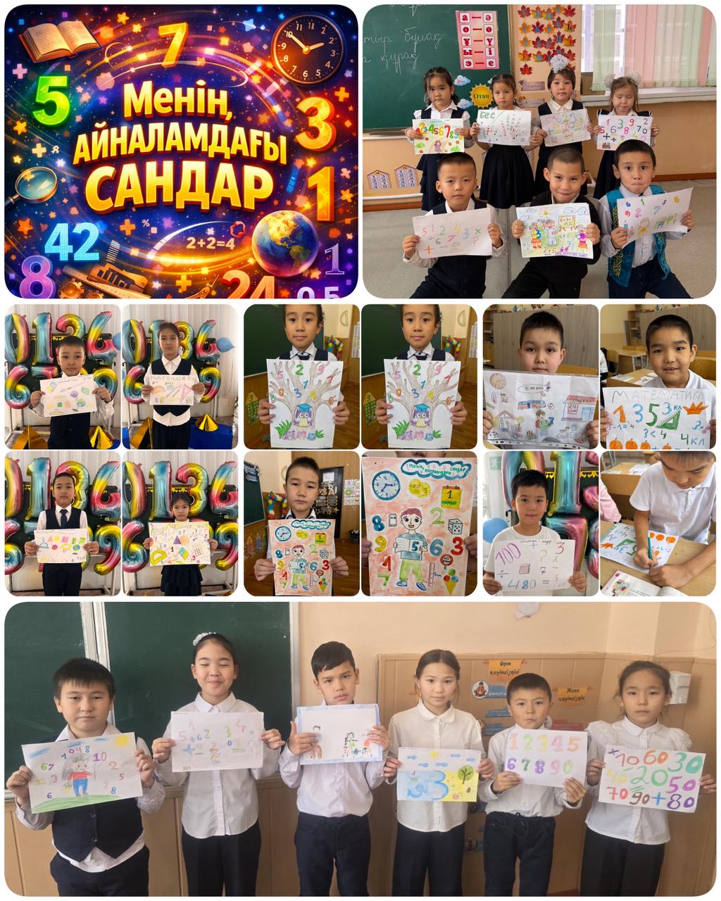 «Математика айналамызда» атты математикалық сауаттылық апталығы аясында 1–4 сынып оқушылары арасында «Менің айналамдағы сандар» тақырыбында суреттер бойынша шығармашылық жұмыс ұйымдастырылды. Шара барысында оқушылар қоршаған ортадағы сандардың күнделікті өмірмен байланысын сурет арқылы бейнеледі. Байқауға белсенді қатысқан оқушылардың жұмыстары бағаланып, үздіктері марапатталды.