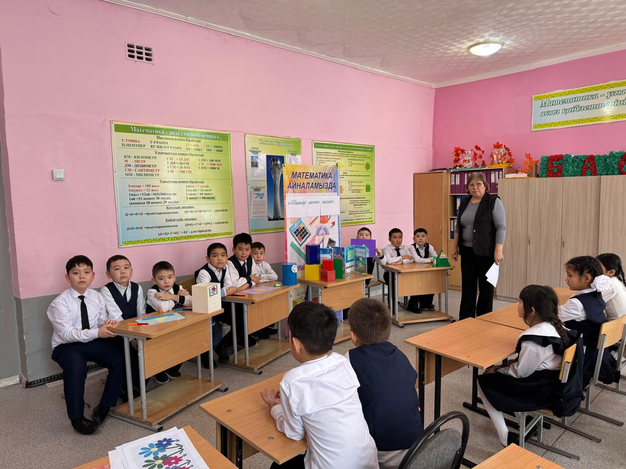 «Математика айналамызда» математикалық сауаттылық аптасында 27 қаңтар күні 2-3 сыныптар арасында «Пішіндер әлеміне саяхат» сайысы болды.Мақсаты логикалық ойлау, қиялдау және шығармашылық қабілеттерін дамыту. Сайыс 5 кезең тапсырмаларынан құрылған.