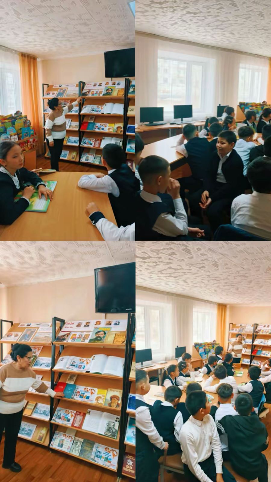 В ходе мероприятия школьникам была представлена книжная выставка «Юбиляры 2026 года». На выставке были размещены книги, посвящённые жизни и творчеству выдающихся деятелей казахского народа — Ибрая Алтынсарина, Алихана Букейханова, Жамбыла Жабаева, Кажымукана Мунайтпасова, Мукагали Макатаева, Куляш Ахметовой, Талгата Мусабаева, Кайрата Рыскулбекова.