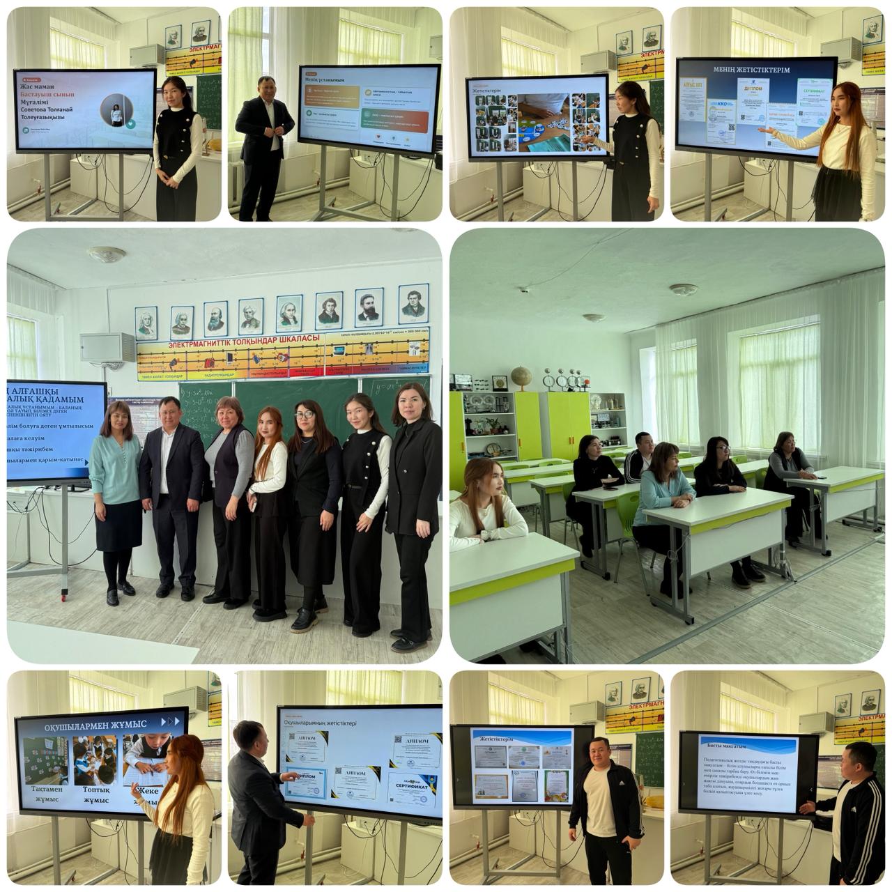 Сегодня в нашей школе прошла школьная педагогическая олимпиада «Одарённый ребёнок – талантливый учитель». Цель мероприятия – повышение профессионального мастерства педагогов, развитие их творческого потенциала и улучшение качества образования.В олимпиаде приняли участие учителя начальных классов Арманкызы Диана, Советова Толганай, учитель информатики Амирхашев Фазылжан, учитель физической культуры Исабай Асқар, представившие свои педагогические разработки и творческие работы.В ходе конкурса оценивались: